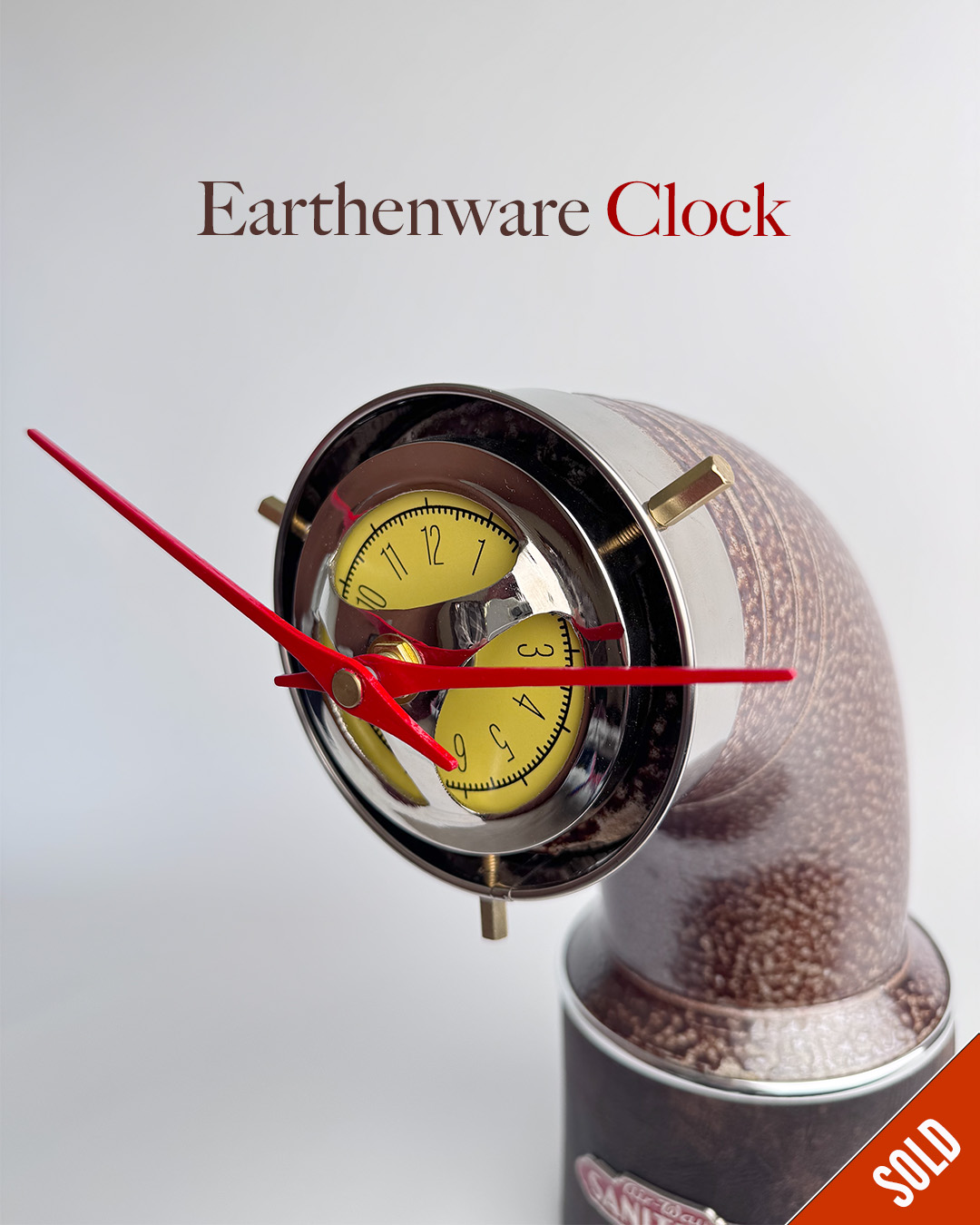 (0846) EARTHENWARE CLOCK- $450 NZD (SOLD) This unique creation features an antique salt-glaze earthenware pipe...