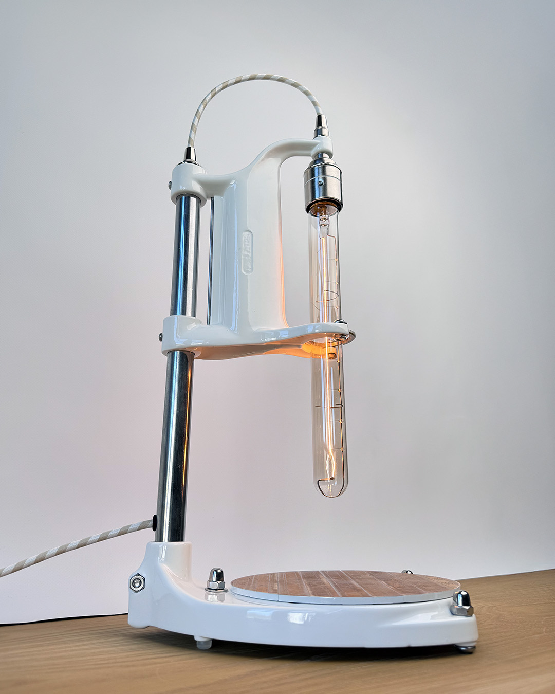 I have always been captivated by antique industrial objects. Built with strength and purpose, they reveal a distinct design aesthetic beneath their utilitarian surfaces. While many artists who work with industrial salvage lean toward Steampunk, Assemblage, or similar styles, my approach is different: I focus on refinement, elegance, and aesthetics. Whether reshaping a drill press into a lamp or reimagining other forgotten relics, my guiding philosophy remains the same—to create pieces that appear as though they were always meant to exist in their new form, natural and inevitable in their transformation.